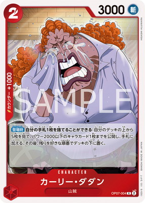 【登場時】自分の手札1枚を捨てることができる:自分のデッキの上から5枚を見て、パワー2000以下のキャラカード1枚までを公開し、手札に加える。その後、残りを好きな順番でデッキの下に置く。